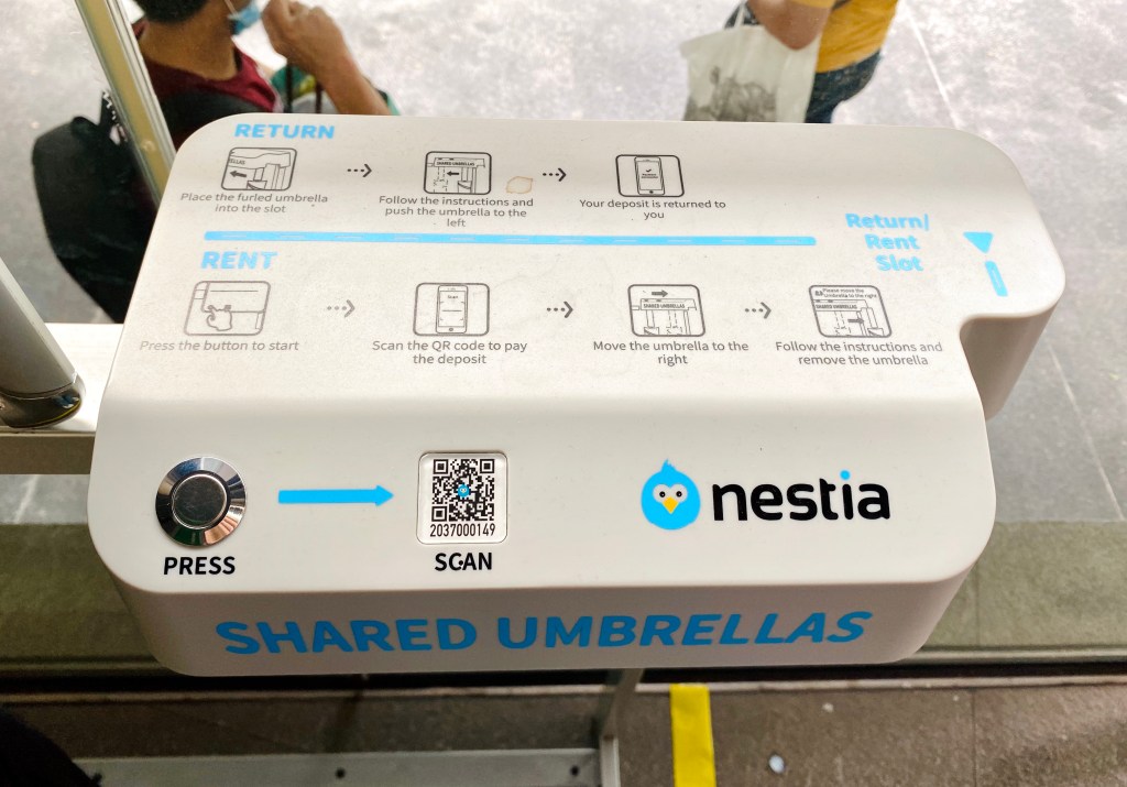 不過,不管共享雨傘在其他國家的成功與失敗,在新加坡至少也運行了2年,Nestia在租借雨傘的收費方式是於租借時收一筆9.9新加坡幣的押金,約莫230元台幣,並收取一天24小時0.9新幣(約20台幣)的租金。